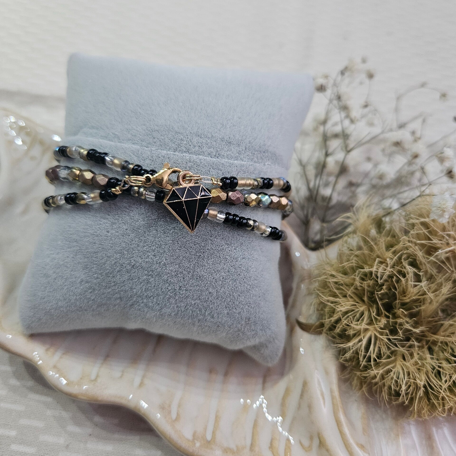 Mooie armband met Fire Polished kralen en Delica's. Met leuke diamant bedel.