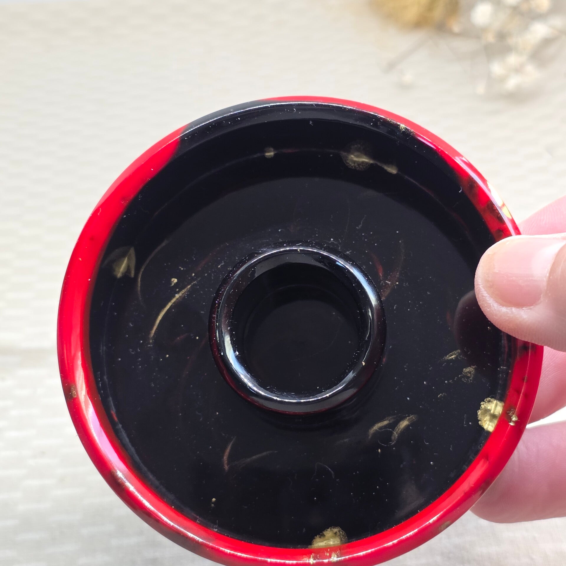 Mooie ronde kaarsenhouder in kleuren metalic zwart/rood